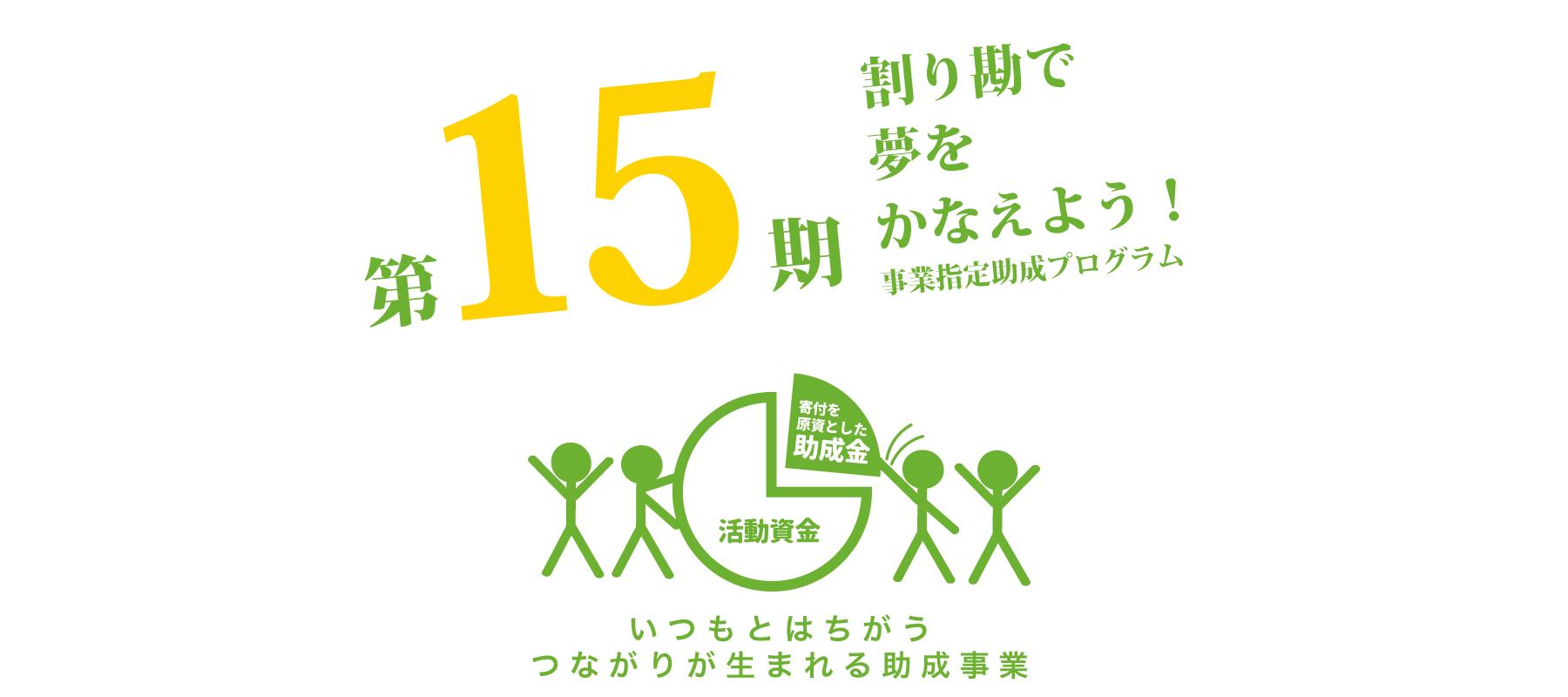 1.割り勘で夢をかなえよう!事業指定助成プログラムとは? 「割り勘で夢をかなえよう!」事業指定助成プログラムとは、寄付を原資とした助成事業です。